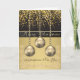 As bolas de natal de ouro e os flocos de neve em fundo preto, elegantes, fazem deste um cartão de Natal ou cartões de natal perfeito para amigos e familiares.