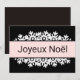 Cartão de Natal Preto, Quartzo Rosa e Flocos de Neve Brancos.