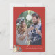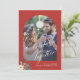 O moderno roteiro de caligrafia é o primeiro Natal juntos, como o Sr. e a Sra. foto, o cartão vermelho de casamento com fotos de arco, texto personalizado, e um pequeno buquê floral botânico de cor aquática sazonal de Natal.