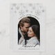 Celebre seu primeiro Natal casado com este maravilhoso cartão "Primeiro Natal Casado com Sparkles Boho Arch Photo". Apresentando um falso efeito de rotinas que adiciona um toque de brilho aos delicados flocos de neve e uma árvore de Natal, esta carta captura a magia da estação. O fundo é desenhado com uma textura esmagada de folha branca, acrescentando uma sensação de brilho e festiva, enquanto ainda é um efeito digital falso. O esquema de cores preto e branco lhe dá um aspecto eterno e elegante, fazer a maneira perfeita de compartilhar sua alegria e amor com amigos e família durante o feriado. Personalize-o com a sua foto favorita para criar um belo manejo que apreciará por anos.
