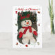 Boneco de neve fofo e simpático com chapéu e cachecol vermelho e verde para o Primeiro Natal do Bebê