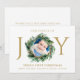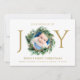 Um cartão de Natal elegante com um conjunto floral de alegria com tipografia dourada moderna para você personalizar adicionando o nome da sua família e especial. Criado por Thisisnotme©