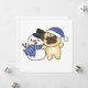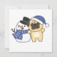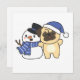 Cartão De Festividades Pug Com Snowman No Inverno Para O Natal