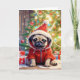 Cartão De Festividades Pug Santa sob a Árvore de Natal