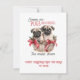 Nestled together in a cozy woven basket, two expressive pugs steal the spotlight with their irresistible charm. The basket is trimmed with festive flair—red ribbon bows on each side, accented by sprigs of evergreen and bright red berries, evoking classic holiday warmth. The pugs sit close, their faces full of affection and mischief, perfectly capturing the spirit of togetherness. Above them, playful text reads: "Sending you PUGS AND KISSES this holiday season"—a punny twist that adds humor and heart to this adorable scene. Ideal for dog lovers and anyone who enjoys a snuggle-worthy dose of seasonal cheer.
