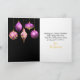 Send warm holiday wishes with this sophisticated folded Christmas card featuring five elegant ornaments in purple and gold tones. Each ornament showcases a unique design - floral, snowflake, dripping faux glitter, diamond pattern, and stars - against a rich black background with golden sparkles. The luxurious palette and refined layout make this card ideal for stylish families, formal greetings, or corporate holiday messages. Perfect for those who love modern elegance with a festive twist.