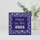 Square wish card Happy New Year written in English in white font with a lot of golden stars on a Purple background - editable text and background