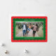 Simples e festivo, este cartão com fotos verde e vermelho de feriado faz com que sua orientação horizontal para a paisagem fotografe a estrela dentro de uma armação pré-disquete e escalpada de tendência. Acentuado com uma saudação encantadora e texto de nome na frente, a parte de trás do cartão tem ampla margem para uma mensagem mais longa com atualizações familiares e qualquer outra mensagem de apoio que você queira compartilhar com a família e os amigos durante a época de Natal. Como o clássico guarda-roupa dos elfos Papais noeis, o bloqueio de cores do vermelho cereja e do verde-pinheiro deu um tom festivo para quase qualquer foto!