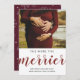 cartão de anúncio de nascimento bonito e simples durante o inverno ou a estação de férias com fotografia personalizada, o dorso apresenta flocos de neve prateados e fundo vermelho-escuro/burgundy