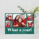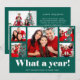 Este simples e engraçado cartão de Natal de várias fotos diz "Que ano!" em tipografia branca moderna em um fundo verde festivo com uma grade de cinco fotos na frente do cartão. O verso contém mais duas fotos, além de um espaço para adicionar sua mensagem pessoal. Uma maneira fofa e elegante de celebrar o fim de um ano muito difícil! Perfeito para o Natal ou Ano Novo.