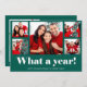 Este cartão de Natal simples e engraçado com várias fotos diz "Que ano!" em tipografia branca e moderna sobre um fundo verde festivo com uma grade de cinco fotos na frente do cartão. O verso contém mais duas fotos, além de um espaço para adicionar sua própria mensagem pessoal. Uma maneira fofa e elegante de celebrar o fim de um ano muito difícil! Perfeito para o Natal ou Ano Novo.