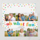 Envie a alegria e a diversão do ano com o Cartão de Natal Oh Que Diversão Seis Fotos Colagem! Este cartão de fotos alegre apresenta uma saudação, oh que diversão, em uma letra caprichosa e colorida, rodeada por pontos coloridos coordenados. Com espaço para seis fotos na frente, é uma maneira perfeita de exibir suas memórias mais felizes do ano. A alegria do cartão continua no verso com pontos coordenados.