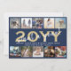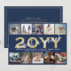 Que ano para se lembrar! Envie saudações na moda alegres e compartilhe 10 das suas fotos favoritas com um cartão de feriado personalizado de colagem de fotos 5x7. (DICA DE IMAGEM: Uma maneira fácil de centralizar uma foto exatamente como você deseja é recortá-la antes de carregá-la no site do Zazzle.) Todo texto nesta modelo é simples de personalizar para incluir qualquer texto como Feliz Natal, Feliz Feriados, Saudações de Seasons, Cheers de Anos novos, etc. design azul-marinho, branco e dourado apresenta caligrafia manuscrita moderna de script, nome e ano da família de tipografia modernos e uma grade de fotos única com dez fotos quadradas de sua escolha. No verso está o espaço para escrever uma mensagem personalizada ou o ano em revisão. A família e os amigos adorarão mostrar esta elegante carta personalizada. Observe que o ouro é impresso a cor, não a folha metálica.