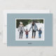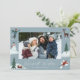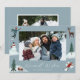 Um cartão de feriado bonito com sua foto horizontal cercada por ilustrações de uma pessoa jogando uma bola de neve, um boneco de neve, um veado, um trenó com presentes, e uma pessoa fazer um anjo de neve. "Desejos mais quentes" é exibido em um script branco, escrito à mão, com seu nome de família mostrado abaixo. A parte traseira da placa exibe uma foto adicional.