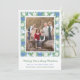 * Crédito da fotografia: Fotografia © Storytree Studios, Stanford, CA ** / Elegant Happy Holidays cartões de fotos com espaço para uma fotografia de casal ou de família. Neste design, a foto é cercada por uma estrutura de aquarela que incorpora o verde de inverno, os cães de cerâmica de Staffordshire, azuis e brancos, e a poinsettia branca. Todos os elementos de aquarela foram originalmente pintados manualmente, em aquarelas, em papel de algodão a 100%, antes de serem digitalizados e arranjados/estilizados digitalmente. O reverso do design é uma xadrez verde-inteligente e azul-tartã, em tons para corresponder à frente.