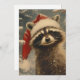 Celebre a temporada com nosso cartão festivo de Natal com um bonitinho guaxinim fazendo um lindo chapéu de Papai Noel. Esta design caprichosa captura o espírito de alegria e alegria, fazer a forma perfeita de enviar desejos de férias calorosos aos seus entes queridos.