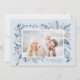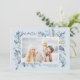Este cartão de férias simples e elegante, inspirado na natureza, apresenta a sua foto favorita, horizontal ou orientada à paisagem, enfeitiçada nos cantos com imagens de uma cor azul-aquática graciosa. "Paz" aparece no canto superior esquerdo em um guião manuscrito em chic, com seus nomes e o ano no canto inferior direito. Uma elegante design botânica para as suas saudações de Natal de 2021.