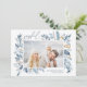 Este cartão de férias simples e elegante, inspirado na natureza, apresenta a sua foto favorita, horizontal ou orientada à paisagem, enfeitiçada nos cantos com imagens de uma cor azul-aquática graciosa. "Joyful" aparece no canto superior esquerdo em um guião manuscrito em chic, com seus nomes e o ano no canto inferior direito. Uma elegante design botânica para as suas saudações de Natal de 2021.