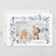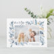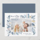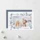 Este cartão de férias simples e elegante, inspirado na natureza, apresenta a sua foto favorita, horizontal ou orientada à paisagem, enfeitiçada nos cantos com imagens de uma cor azul-aquática graciosa. "Feliz" aparece no canto superior esquerdo em um script manuscrito em chic, com seus nomes e o ano no canto inferior direito. Uma elegante design botânica para as suas saudações de Natal de 2021.