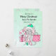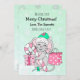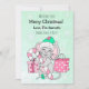 Adorável carta branca desenhada com um rato festivo giro vestindo um chapéu de Papai Noel segurando uma cana doce cercada por presentes. Basta adicionar seus nomes na área de personalização. Cartão temático de Natal rosa.