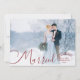 Cartão de Natal e/ou de anúncio de casamento personalizado com foto da temporada de Natal para recém-casados, apresentando 2 imagens (uma de cada lado), título com tipografia de caligrafia elegante moderna MARRIED LITTLE CHRISTMAS na frente e sua escolha de saudação de Natal no verso, com sua escolha de cores de texto. ASSISTÊNCIA: Para obter ajuda com modificação ou personalização do design, alteração de cor ou transferência do design para outro estilo de cartão ou produto, entre em contato com o designer ANTES DE COMPRAR por meio da guia de MENSAGEM do Zazzle Chat abaixo ou envie um e-mail para makeitaboutyoustore@gmail.com.
