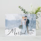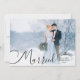 Cartão de Natal e/ou de anúncio de casamento personalizado para época de Natal com foto de recém-casados, apresentando 2 fotos (uma de cada lado), título com tipografia de caligrafia moderna e elegante "NATALZINHO CASADO" na frente e sua escolha de saudação de Natal no verso com sua escolha de cores de texto. ASSISTÊNCIA: Para obter ajuda com modificação de design ou personalização, alteração de cor ou transferência do design para outro estilo de cartão ou produto, entre em contato com o designer ANTES DE ENCOMENDAR através da guia de MENSAGEM do Zazzle Chat abaixo ou envie um e-mail para makeitaboutyoustore@gmail.com.