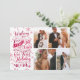Celebre sua primeira temporada de feriados como um casal casado com este cartão de casamento de Natal elegante, apresentando nossa tipografia desenhada à mão e flocos de neve em tons de vermelho e burgundy. Adicione fotos adicionais no verso para exibir suas fotos favoritas. Perfeito para o casal recém-casado usar como anúncio de casamento ou cartão de agradecimento durante as festas de fim de ano. Espalhe amor nesta temporada de feriados com este caprichoso cartão de Natal com foto e letra desenhada à mão que diz "Desejando amor, paz, alegria e beijos enquanto celebramos nossa primeira temporada de feriados como Sr. e Sra".