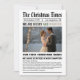 Celebre seu casamento e a temporada de festas com este cartão moderno em estilo de jornal. Projetado para parecer uma primeira página festiva, é totalmente personalizável com sua foto e texto, tornando-o perfeito para compartilhar sua história de amor de uma maneira divertida e única. Disponível em várias variações de cores para combinar com seu estilo.