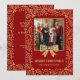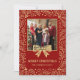 Cartão De Festividades Red & Antique-Gold Bow Family Christmas Photo
