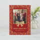 Share warm and joyful holiday wishes with this elegant red and antique-gold family Christmas photo card. Featuring a luxurious metallic gold bow on a vibrant classic-red background, this festive design blends timeless holiday charm with upscale sophistication. Personalize with your family photo, name, and message to create a meaningful keepsake your loved ones will cherish year after year.