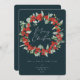 Morangos vermelhos pintados à mão e caules de eucalipto dispostos em uma bela coroa de Natal contra um fundo verde-escuro. Todo o texto, exceto 'Feliz Natal', é totalmente editável para que você possa mudar facilmente a mensagem/estilo/cor/tamanho. A parte traseira é vazio esquerdo se você quiser adicionar uma mensagem mais longa ou um resumo anual - ou trocá-la por uma foto. Elementos de coordenação disponíveis.