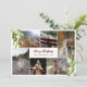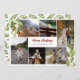 Cartão de Natal floral colage com galhos verdes com flores brancas e bagas vermelhas fazendo seis fotos de sua família dentro a quadro branco. Deseje aos seus amigos e familiares um Feliz Natal com esta foto floral verde de morango vermelho colagem cartão de Natal com seis fotos da família impressas com seu nome e ano, em uma fonte vermelha quente.