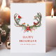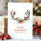 Cartão De Festividades Red Cardinal Birds Felizes Feriados Deer Antlers