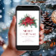 Cartão de Férias de Natal Feliz e Elegante Red Floral Poinsettia.