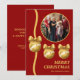 Cartão De Festividades Red & Gold Ornaments Family Christmas Photo
