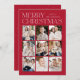 Cartões de foto de Natal moderno com "Feliz Natal" exibido no topo da design em letras brancas em tendência com fundo vermelho. Uma colagem de fotos de 9 fotos é mostrada abaixo em um layout no estilo grade. Personalize o cartão de Natal multifoto com seu nome de família. A placa se reverte para exibir um fundo vermelho com sutis pontos brancos (neve).