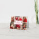 Cartão de Natal com fotografia moderno com um esquema simples que inclui uma colagem de seis das suas fotografias familiares favoritas. No meio está a saudação "Feliz Natal" em um roteiro elegante em vermelho sobre um fundo branco. O dentro tem sua mensagem personalizada.