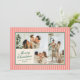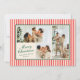 Pequenas faixas verticais vermelhas e creme de coral dão a este cartão de três fotos uma vibração moderna e chic quando combinada com fontes clássicas em verde-floresta. O backer coordenado apresenta uma mensagem personalizada mais longa de alegria e atualização para o ano que é perfeito para enviar a amigos e familiares.