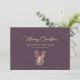 Púrpura e ouro personalizados Cartão de Natal Merry com silhueta de renas de ouro e vinheta de neve. Um falso cartões de natal de roteiro de folha de ouro adiciona um olhar mais festivo a este cartão de feriado. Personalize facilmente este cartão de feriado roxo com seu nome de família e texto ou personalize-o para criar um belo cartão de feriado comercial. O efeito da folha de ouro só é simulado no trabalho de arte. Mais opções de cores disponíveis.