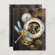 Cartão De Festividades Relógio Steampunk com Dragonfly Mecânica