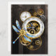 Cartão De Festividades Relógio Steampunk com Dragonfly Mecânica