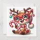 Cartão De Festividades Rena Amada com Cachecol Listrado e Bastão de Doces
