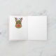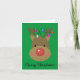 Rena com luzes emaranhadas entre os chifres. Fundo verde com uma moldura simples de linha vermelha e as palavras "Feliz Natal" escritas na parte inferior. Uma moldura vermelha à esquerda interna com uma versão menor da rena e a parte direita interna é deixada em branco para sua mensagem pessoal.