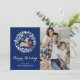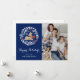 Este cartão apresenta uma adorável coroa de Natal com Rena festiva com azevinho, frutos vermelhos e folhas de pinheiro num fundo azul escuro. Altere a fonte e a cor do fundo ou deixe como está, adicione suas próprias fotos, personalize o texto com o nome da sua família e adicione sua própria mensagem no verso do cartão. Ideal para enviar aos seus familiares e amigos para desejar Feliz Natal. Por favor, explore a Coleção Festiva de Rena de Natal para mais itens.