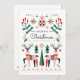 Um design simétrico encantador com duas renas adornadas com padrões geométricos, cercadas por pequenas árvores e enfeites de Natal. O uso de tons rosa, verde e vermelho cria uma cena de Natal caprichosa e inspirada no estilo nórdico, com elementos da natureza estilizados e formas festivas tradicionais.
