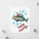 Cartão de Natal divertido da rena do tubarão com flocos de neve