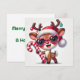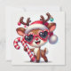 Cartão De Festividades Rena Feliz com Bastão de Doces e Enfeites