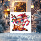 Este cartão de Natal plano apresenta uma rena feliz relaxando com uma cana-de-açúcar, usando óculos em forma de coração. O design divertido é perfeito para espalhar alegria festiva e compartilhar seus votos calorosos. Personalize-o para seus entes queridos.