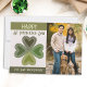 Este cartão de saudação de Dia de São Patrício irlandês, de tendências, apresenta um retrato divertido que vibe Shamrock enquanto adiciona um toque de personalidade, acrescentando seu nome de família e sua foto. Envie um pouco de amor para seus entes queridos este Dia de São Patrício.