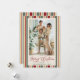 Cartão com fotos de férias personalizado com faixas vermelhas, verdes e douradas inspiradas na safra, com um roteiro elegante de caligrafia para um design de Natal eterno. *Use a Ferramenta Recortar no Editor de Design para ajustar a colocação de fotos.